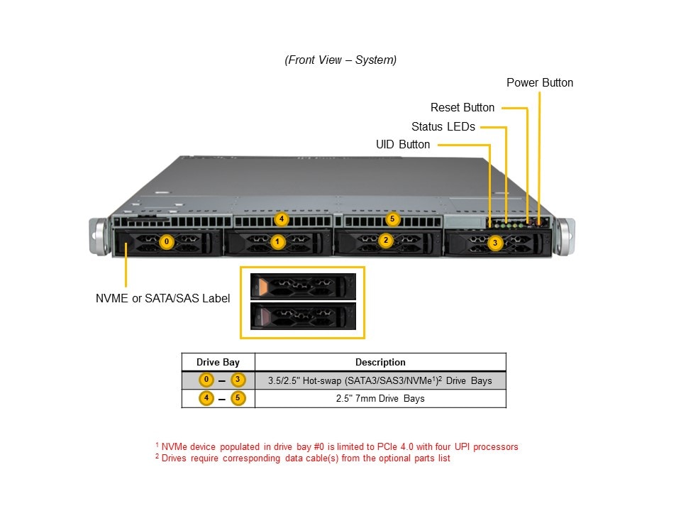 - (*NVMe/SAS/SATA support may require additional storage controller and/or cables, please see the optional parts list for details)