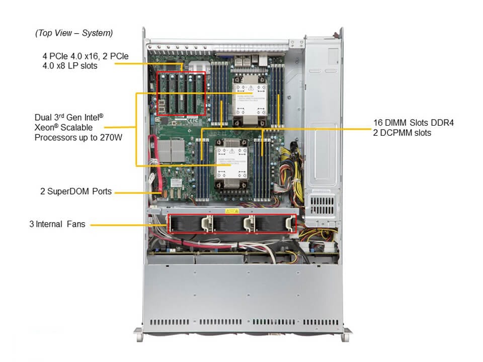 1. Dual sockets P+ (LGA-4189) 3rd Gen Intel® Xeon® Scalable processors CPU TDP supports Up to 270W TDP 3 UPI up to 11.2 GT/s