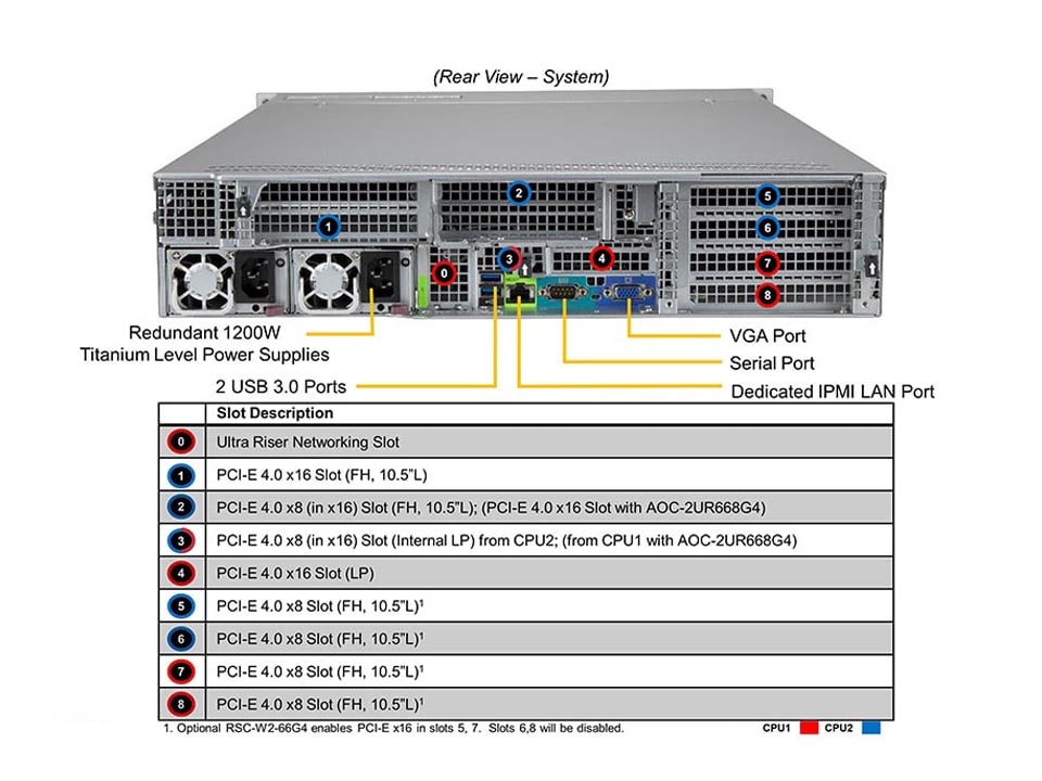 - 5 PCIe 4.0 x8 (in x8) FH/10.5″L slots