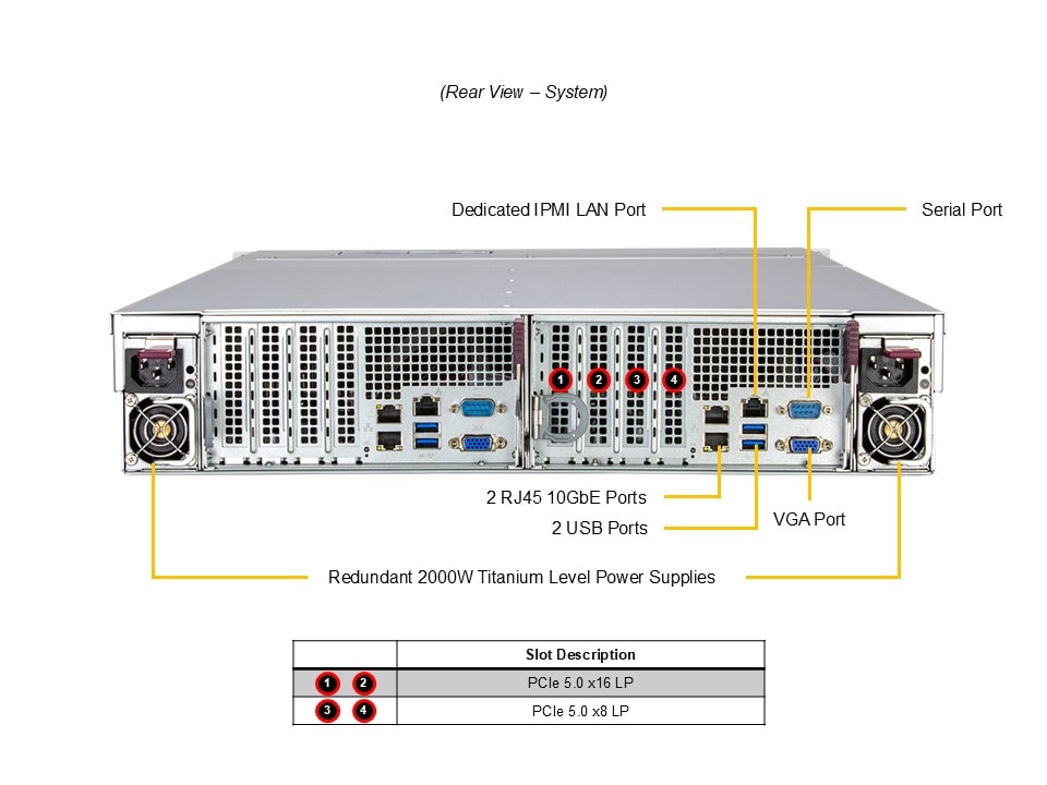 - 2 PCIe 5.0 x8 HHHL slots