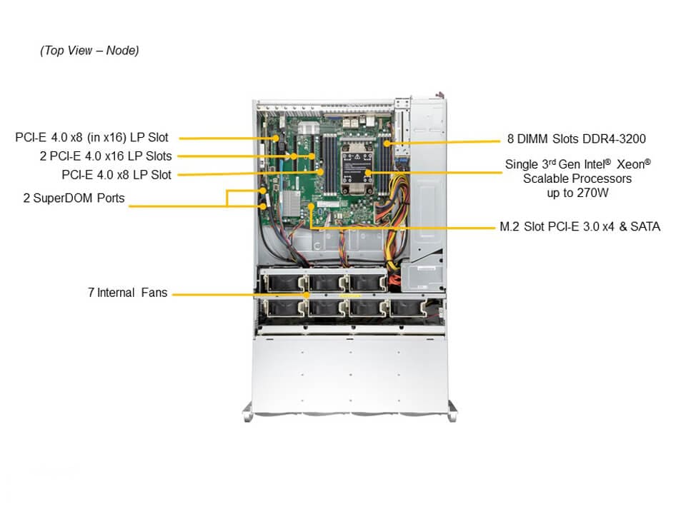 1. Single Socket P+ (LGA-4189) 3rd Gen Intel® Xeon® Scalable processors. Up to 270W TDP.