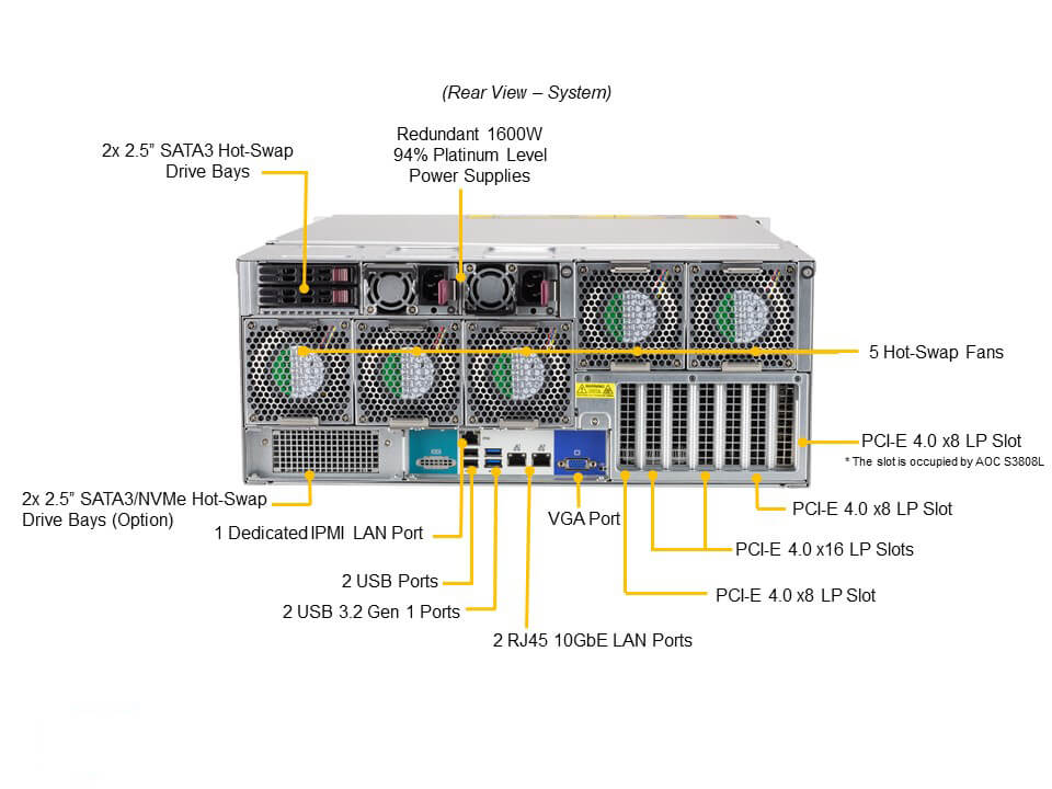 - 2 rear hot-swap 2.5″ SATA drive bays