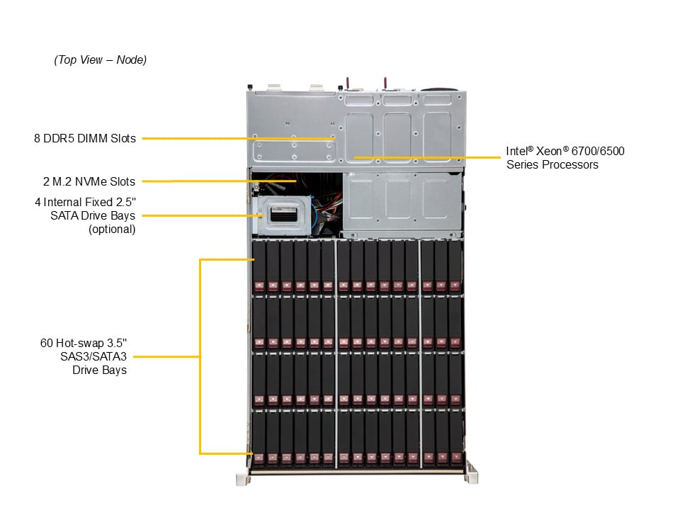 • 60 top-loading hot-swap 3.5″ SAS/SATA drive bays