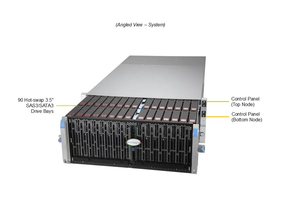 - 90 top-loading hot-swap 3.5″/2.5″ SAS/SATA drive bays