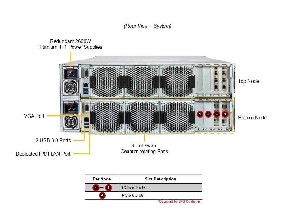 - 1 RJ45 1 GbE Dedicated BMC LAN port