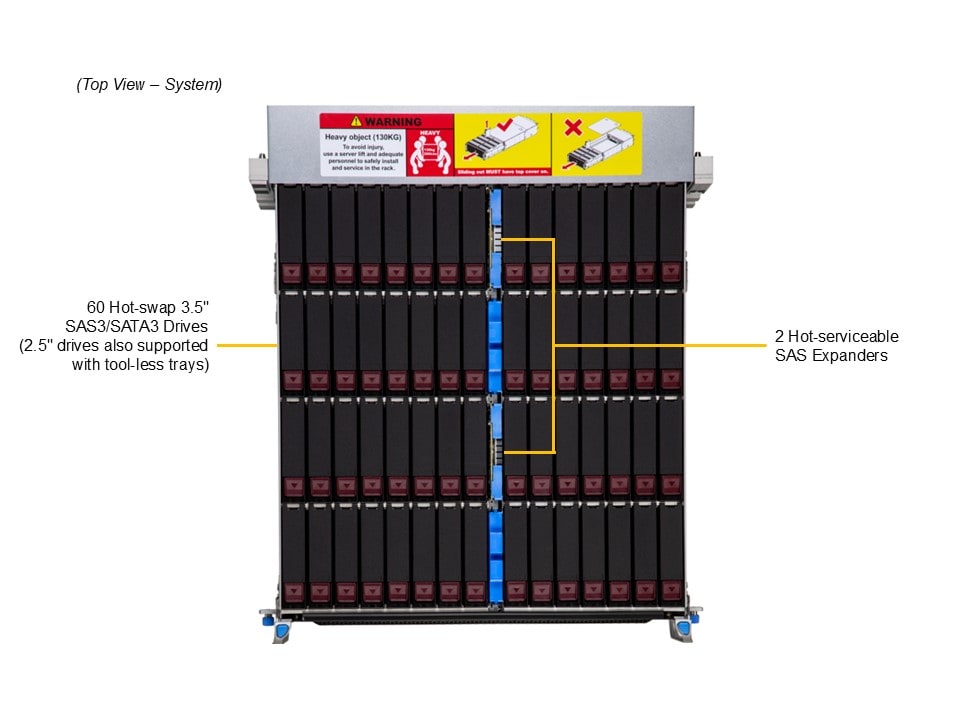 - 60 top-loading hot-swap 3.5″/2.5″ SAS/SATA drive bays