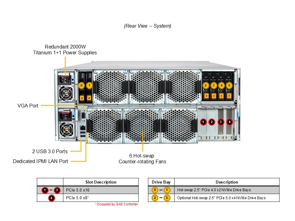 - 4 rear hot-swap 2.5″ PCIe 4.0 x4 NVMe* drive bays