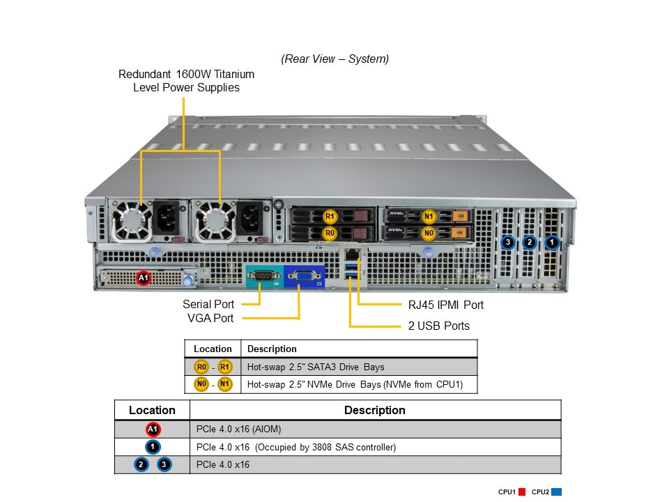 - 2 rear hot-swap 2.5″ NVMe drive bays