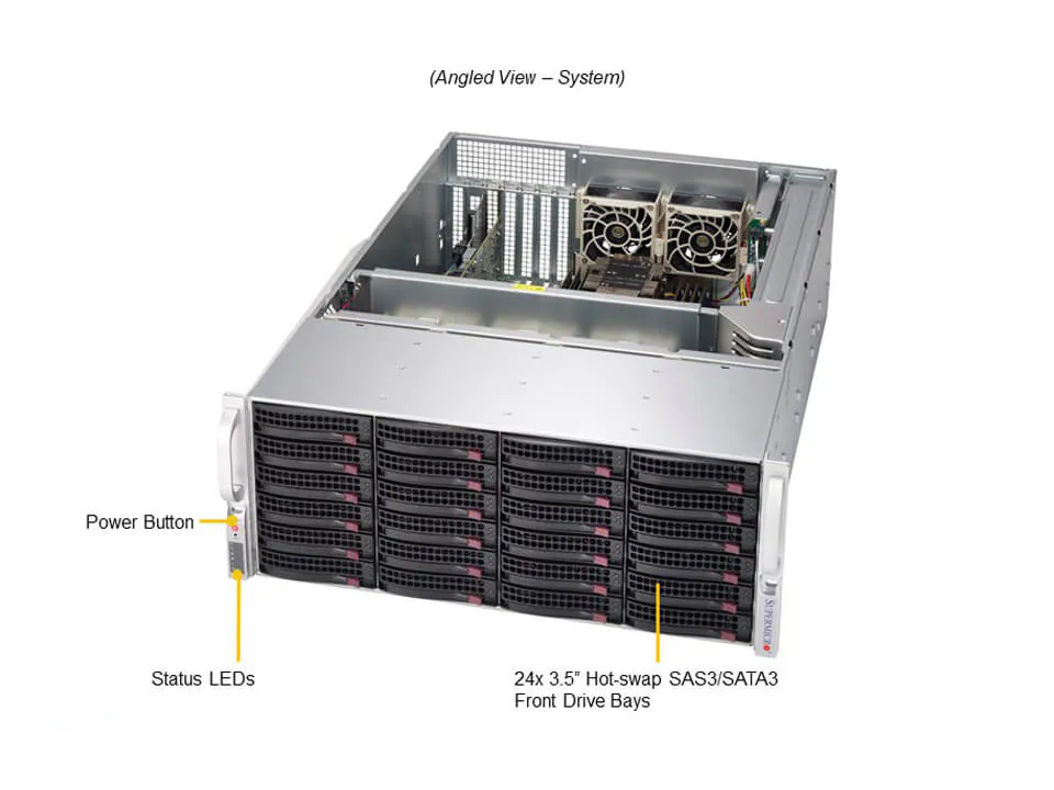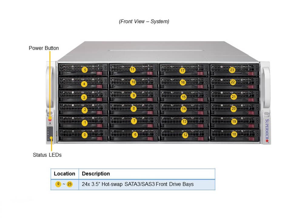 - 24 front hot-swap 3.5″ SAS/SATA drive bays