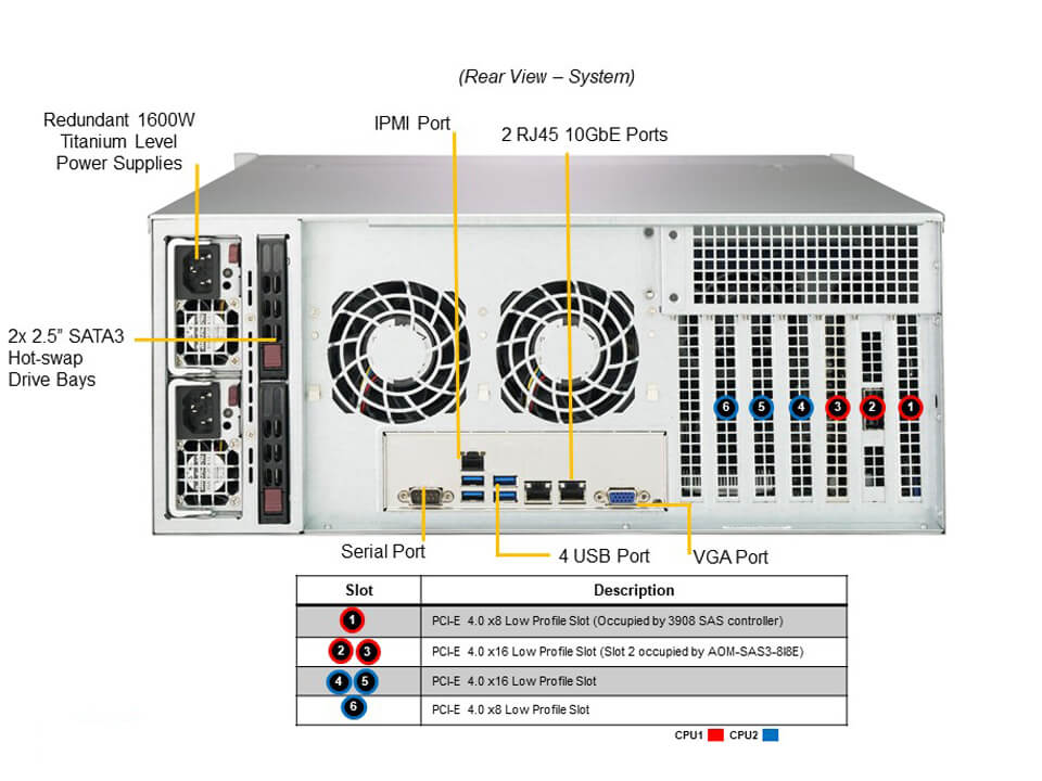 - 2 rear hot-swap 2.5″ SAS*/SATA drive bays