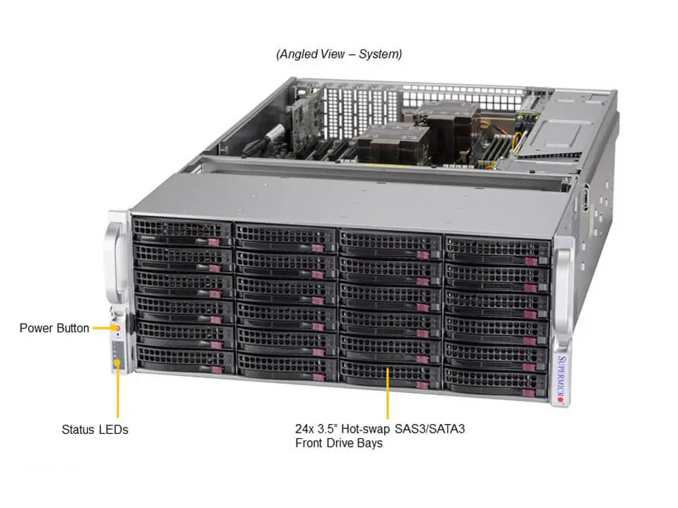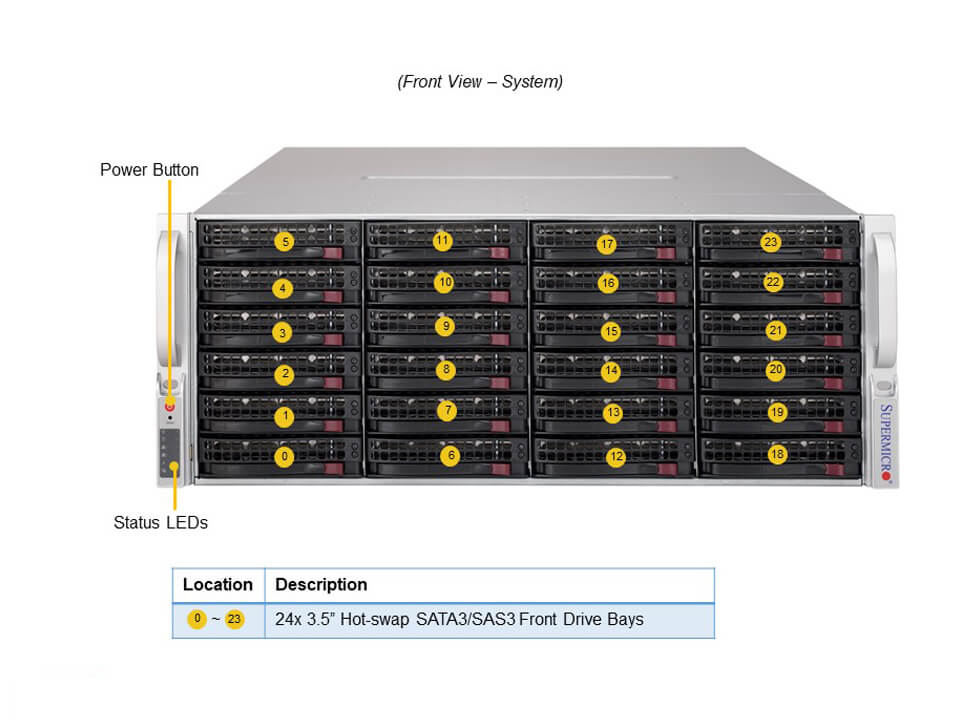 - 24 front hot-swap 3.5″ SAS/SATA drive bays