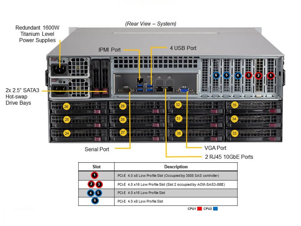 - 12 rear hot-swap 3.5″ SAS/SATA drive bays