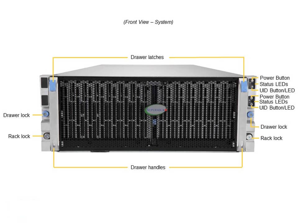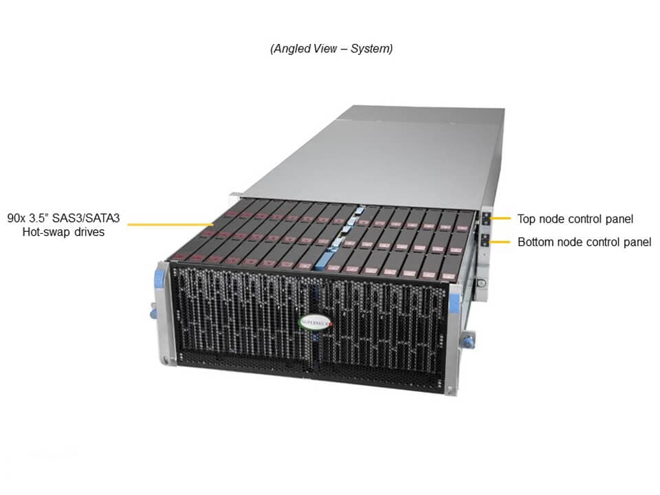 4U 2-node top-loading storage server with 90 hot-swap 3.5″ SAS/SATA bays and PCIe 4.0