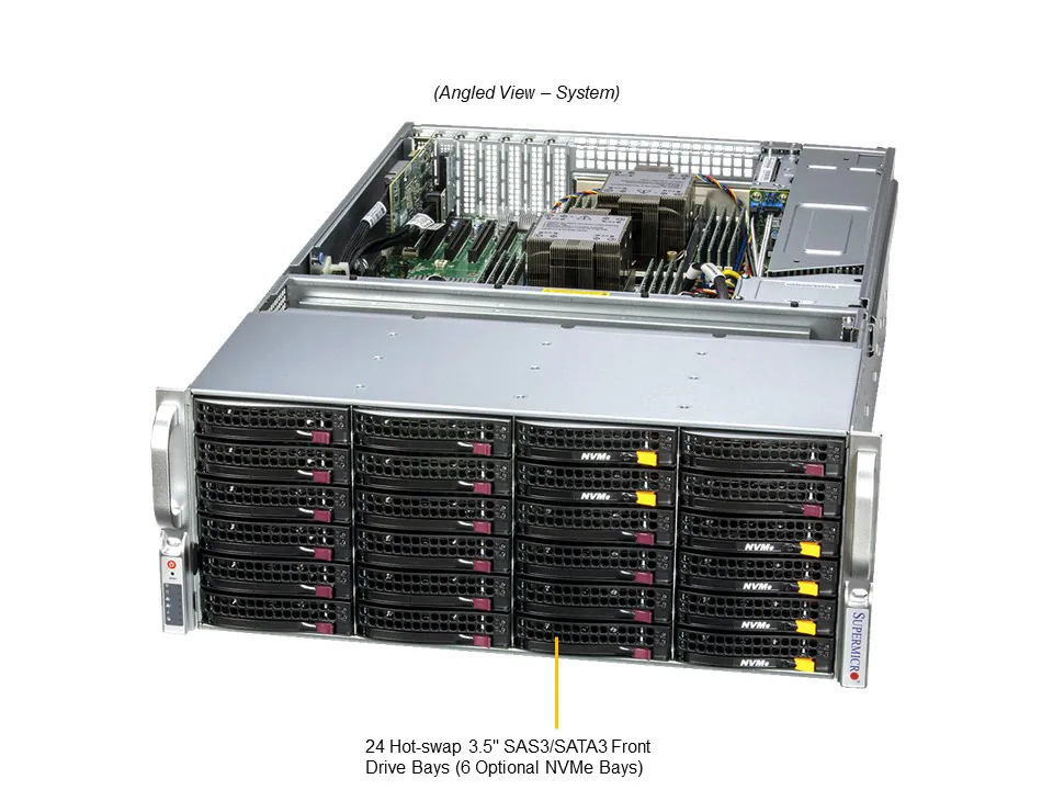 - 24 front hot-swap 3.5″ SAS/SATA drive bays