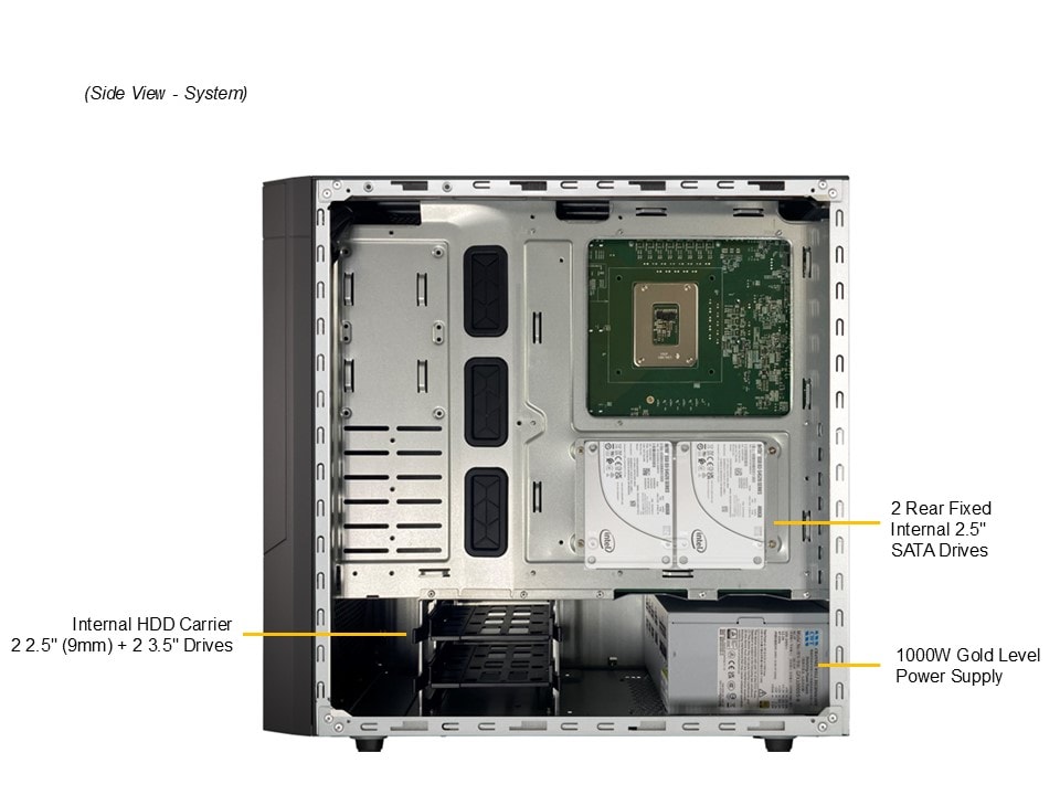 • 2 internal fixed 3.5″/2.5″ SATA drive bays