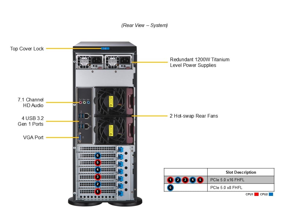 5. Support for up to 2x double-width PCIe GPU accelerator cards5 PCIe 5.0 x16 FHFL + 1 PCIe 5.0 x8 FHHL slotsNVIDIA RTX PRO™ 6000 Blackwell Max-Q Workstation Edition supported