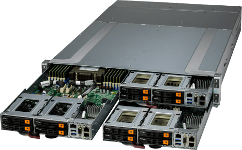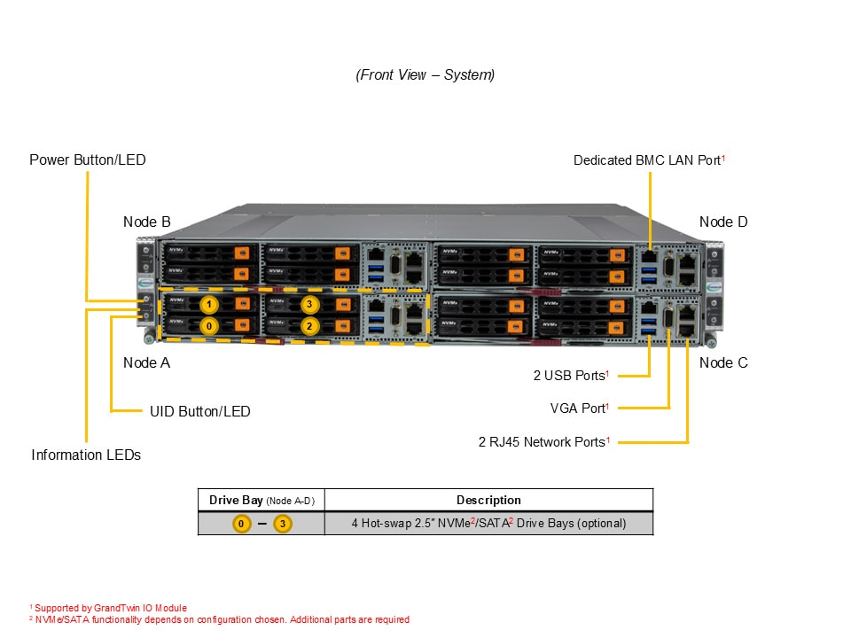 - 4 front hot-swap 2.5″ NVMe/SATA drive bays