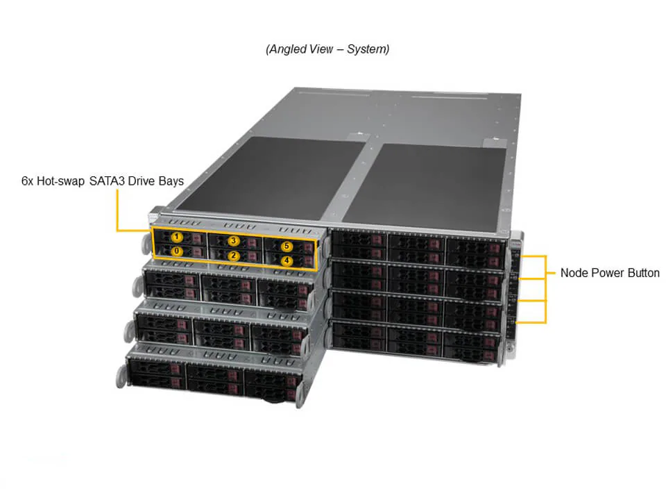 - 4 front hot-swap 2.5″ NVMe*/SATA drive bays