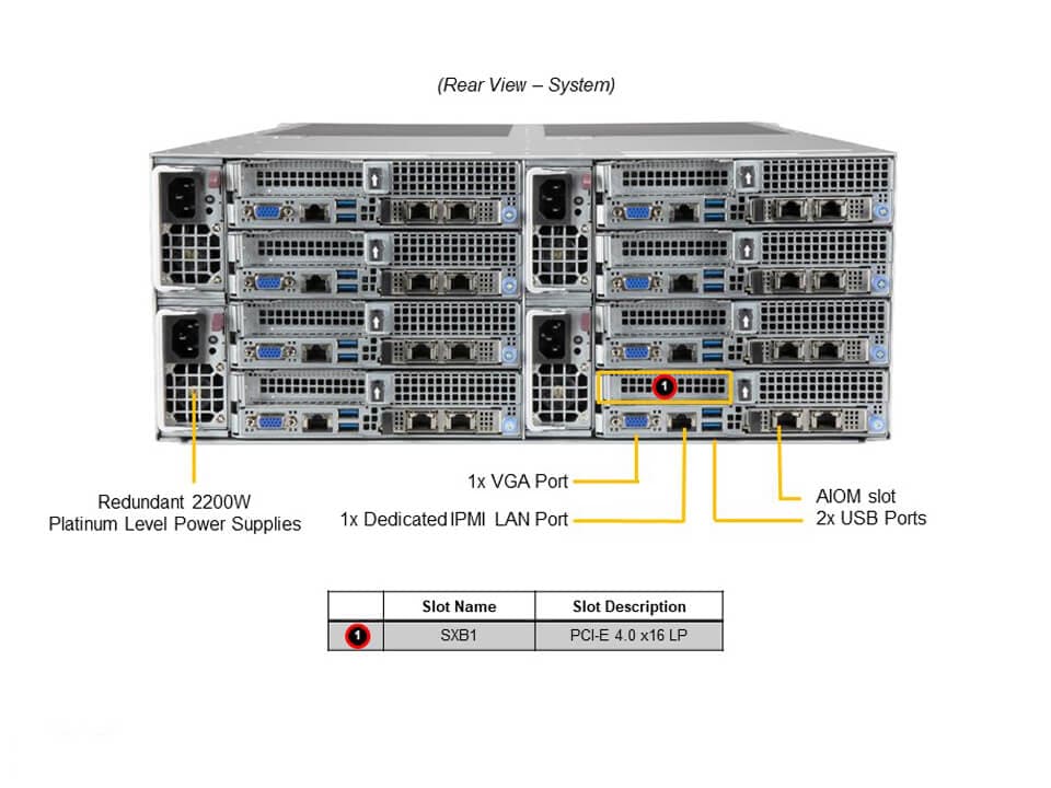 - 1 RJ45 1 GbE Dedicated BMC LAN port