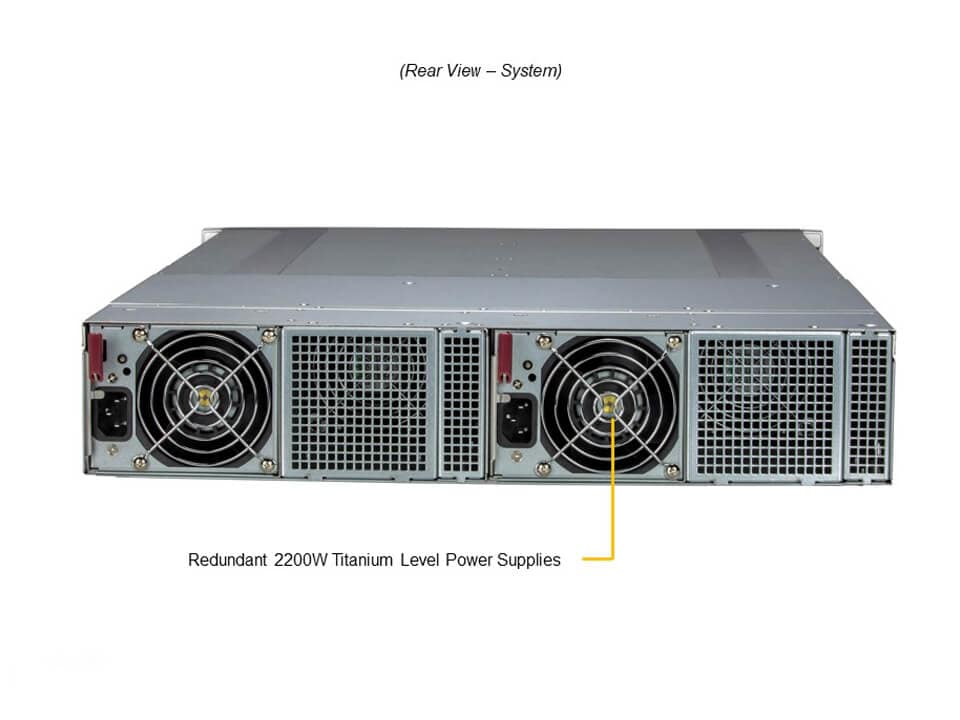 - 1x 2200W 1x 2200W Redundant Titanium Level (96%) power supply Dimension (WxHxL)106.5 x 84 x 245.3 mm Input200-220Vdc (2090W for North America – UL & cUL)230-240Vdc (2090W for the Rest of the World)220-230Vdc (1980W for the Rest of the World)200-220Vdc (1800W for the Rest of the World)100-127Vdc (1200W for the Rest of the World)220-240Vdc (2200W for North America – UL & cUL)1200W: 100-127Vac / 50-60Hz 1800W: 200-220Vac / 50-60Hz 1980W: 220-230Vac / 50-60Hz 2090W: 230-240Vac / 50-60Hz (for TUV/CB)2090W: 180-220Vac / 50-60Hz (For UL/cUL Only)2090W: 230-240Vdc / 50-60Hz (for CQC only)2200W: 220-240Vac / 50-60Hz (For UL/cUL Only) +12VMax: 100A / Min: 0A (100Vac-127Vac)Max: 150A / Min: 0A (200Vac-220Vac)Max: 165A / Min: 0A (220Vac-230Vac)Max: 174.17A / Min: 0A (180Vac-220Vac) (For UL/cUL Only)Max: 174.17A / Min: 0A (180Vdc-220Vdc) (For UL/cUL only)Max: 174.17A (230Vac-240Vac)Max: 183.3A / Min: 0A (220Vac-240Vac)Max: 183.3A / Min: 0A (220Vac-240Vac) (For UL/cUL only) 12V SBMax: 2A / Min: 0A Output TypeBackplanes (gold finger)
