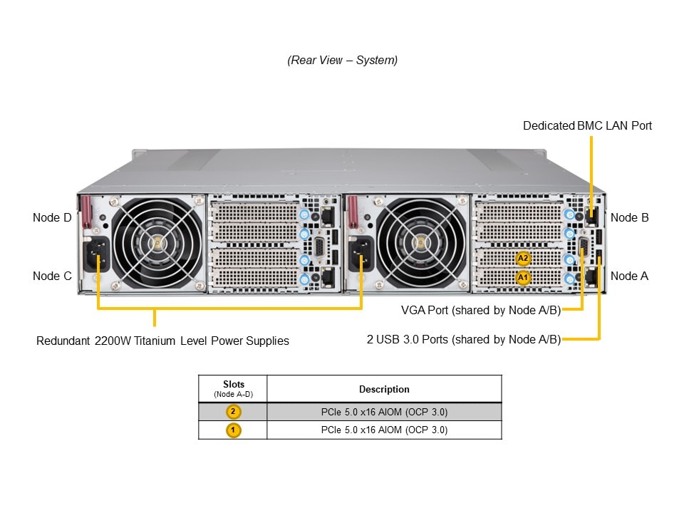 - 2 PCIe 5.0 x16 AIOM slots (OCP 3.0 compatible)