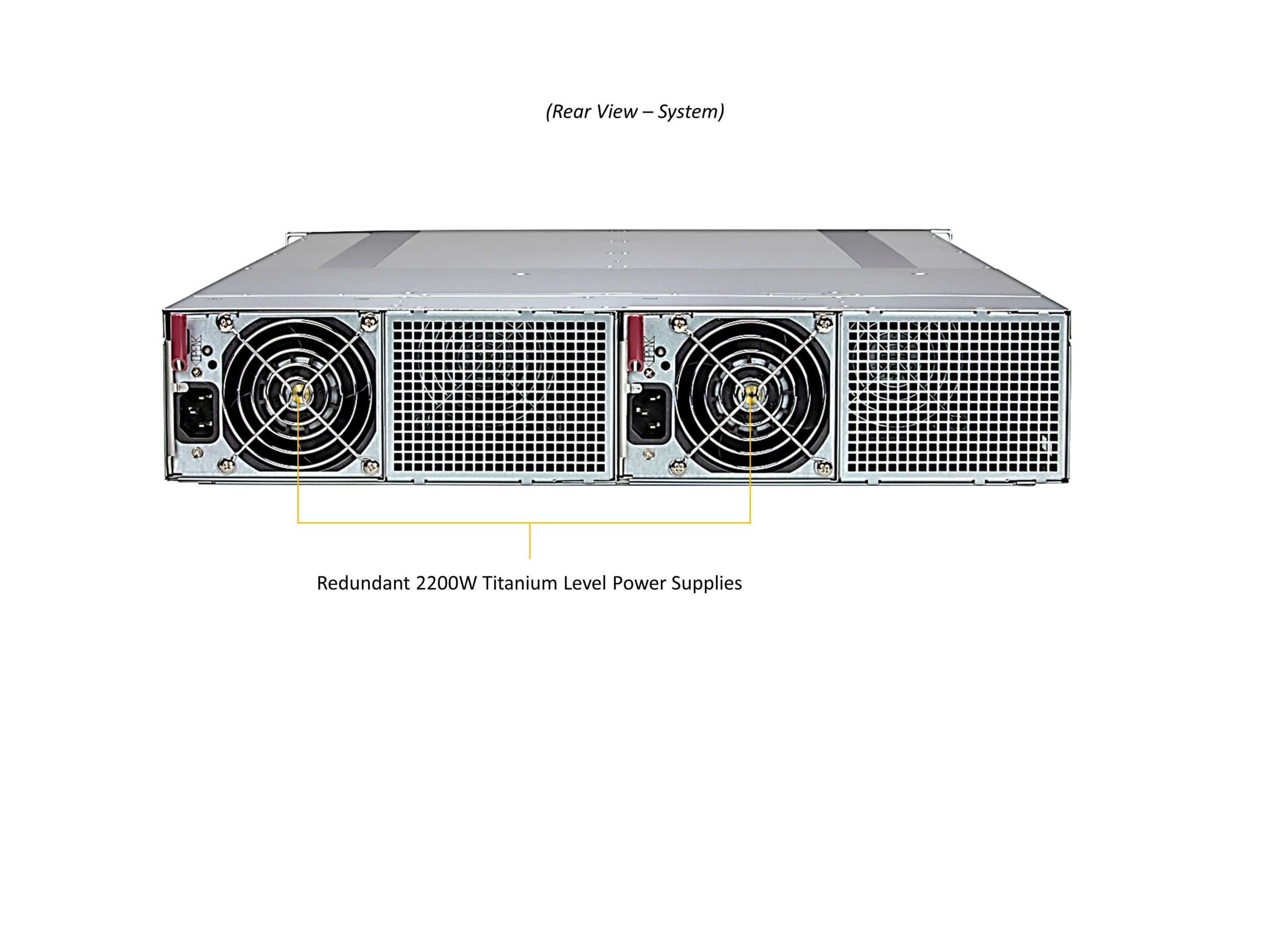 - 2x 2200W 2x 2200W Redundant (1 + 1) Titanium Level (96%) power supplies Dimension (WxHxL)106.5 x 84 x 245.3 mm Input200-220Vdc (2090W for North America – UL & cUL)230-240Vdc (2090W for the Rest of the World)220-230Vdc (1980W for the Rest of the World)200-220Vdc (1800W for the Rest of the World)100-127Vdc (1200W for the Rest of the World)220-240Vdc (2200W for North America – UL & cUL)1200W: 100-127Vac / 50-60Hz 1800W: 200-220Vac / 50-60Hz 1980W: 220-230Vac / 50-60Hz 2090W: 230-240Vac / 50-60Hz (for TUV/CB)2090W: 180-220Vac / 50-60Hz (For UL/cUL Only)2090W: 230-240Vdc / 50-60Hz (for CQC only)2200W: 220-240Vac / 50-60Hz (For UL/cUL Only) +12VMax: 100A / Min: 0A (100Vac-127Vac)Max: 150A / Min: 0A (200Vac-220Vac)Max: 165A / Min: 0A (220Vac-230Vac)Max: 174.17A / Min: 0A (180Vac-220Vac) (For UL/cUL Only)Max: 174.17A / Min: 0A (180Vdc-220Vdc) (For UL/cUL only)Max: 174.17A (230Vac-240Vac)Max: 183.3A / Min: 0A (220Vac-240Vac)Max: 183.3A / Min: 0A (220Vac-240Vac) (For UL/cUL only) 12V SBMax: 2A / Min: 0A Output TypeBackplanes (gold finger)
