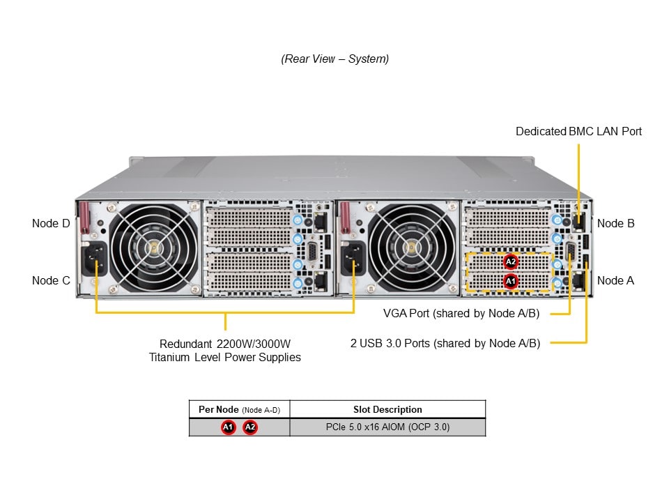 1. Compact 2U 4-Node GrandTwin Rear IO with up to 6 hot-swap 2.5 NVMe drives and 2 OCP3.0 slots per node