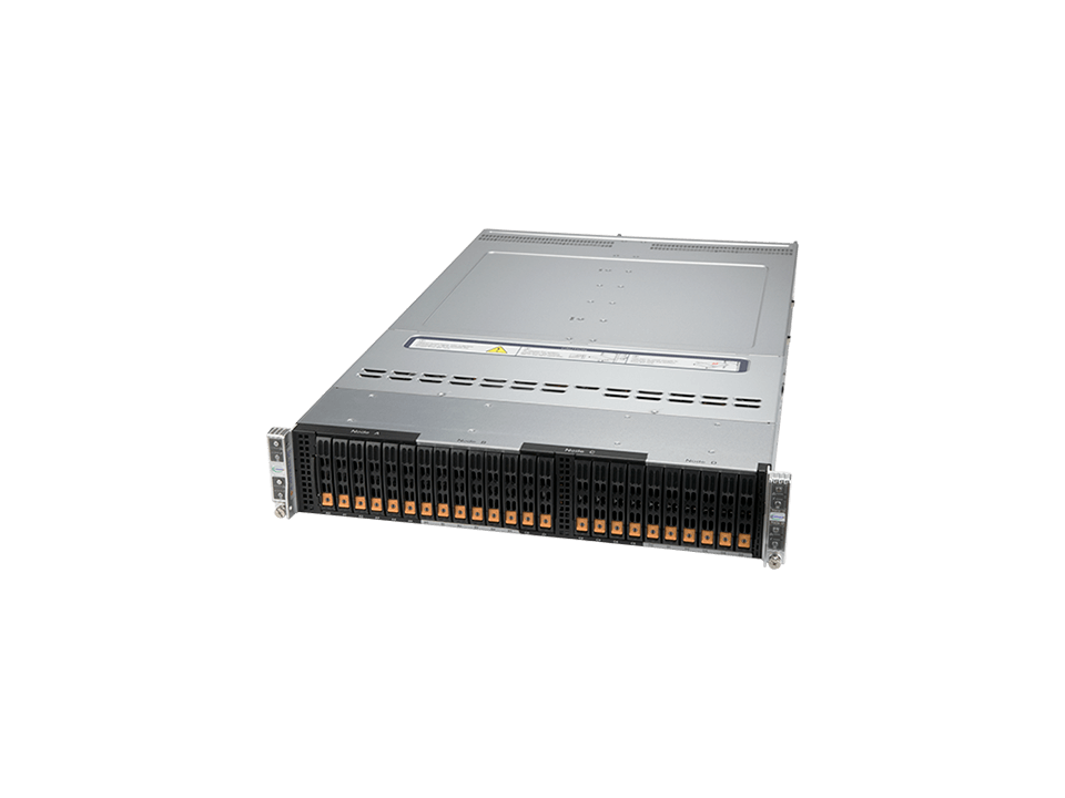 2U BigTwin with 6 2.5″ NVMe/SATA drives per node