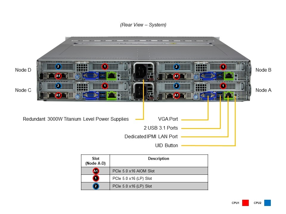 - Default2 PCIe 5.0 x16 LP slots 1 PCIe 5.0 x16 AIOM slot (OCP 3.0 compatible)